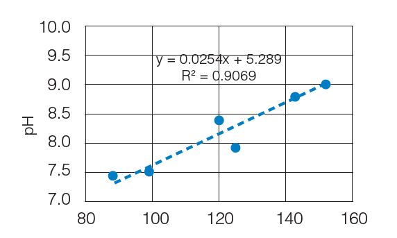 pH của nước ngầm bị ảnh hưởng bởi đá và hóa chất bên dưới mặt đất, cũng như chất lượng nước được thấm qua tầng ngậm nước từ bề mặt. Ở một số nơi, đá vôi trong tầng chứa nước có thành phần chủ yếu là canxi cacbonat (CaCO3). Nước có tính axit sẽ phản ứng với cacbonat trong đá vôi, hòa tan đá vôi và trung hòa axit đến pH khoảng 7.3 Đây có thể là lý do cho các giá trị pH thu được trong ④ và ⑤.