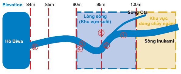 Như thể hiện trong Bảng 1, nước tại điểm hợp lưu của sông Inukami và sông Ota có nhiệt độ, pH, độ dẫn điện và oxy hòa tan cao hơn so với các vùng nước trước điểm ① và sau điểm ③ khu vực hợp lưu. Do sông Ota phụ lưu nằm dọc theo khu dân cư, vì vậy các hoạt động của con người trong khu vực này có thể đã góp phần làm nhiệt độ nước và độ dẫn điện tăng nhẹ tại điểm hợp lưu. Các chất vô cơ hòa tan (ví dụ, khoáng chất, muối) từ nước thải có thể gây ô nhiễm nước. Giá trị độ dẫn của dòng chảy ngầm trước điểm hợp lưu bị ảnh hưởng bởi các điều kiện địa chất.