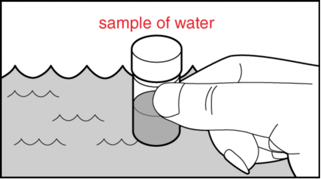 Bước 3: Tráng lọ mẫu ít nhất 02 lần bằng mẫu nước thu được rồi loại bỏ, sau đó đổ mẫu đến vạch định mức trên lọ (khoảng 10 mL). Nếu cần, đảo nhẹ lọ để loại bỏ bọt khí.