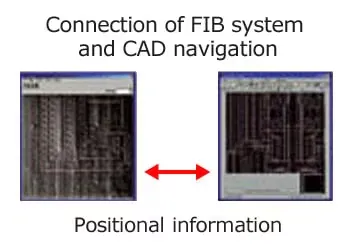 Hệ thống Điều hướng CAD phục vụ phân tích Lỗi (NASFA) được sử dụng để xác định vị trí trên dữ liệu CAD tương ứng với mô hình LSI đang được quan sát bằng hệ thống SEM hoặc FIB. Khi các tọa độ trên dữ liệu CAD được chỉ định, bàn mẫu sẽ di chuyển đến các tọa độ cụ thể đó, hiển thị hình ảnh SEM tương ứng (hoặc hình ảnh SIM đối với hệ thống FIB). Dữ liệu CAD và hình ảnh SEM có thể được chồng lên nhau, giúp dễ dàng kiểm chứng vị trí các đường dây ở lớp dưới, từ đó cải thiện đáng kể hiệu suất của công việc phân tích và sửa chữa.