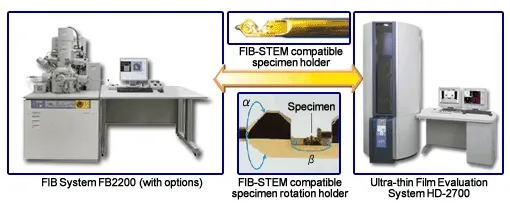 Một hệ thống đánh giá thiết bị bán dẫn mới được phát triển, bao gồm hệ thống FIB FB2200 và hệ thống STEM 200 kV HD-2700. Hệ thống này thực hiện các quy trình từ tìm kiếm các điểm lỗi đến phân tích cấu trúc ở quy mô dưới nanomet chỉ trong vòng vài giờ.