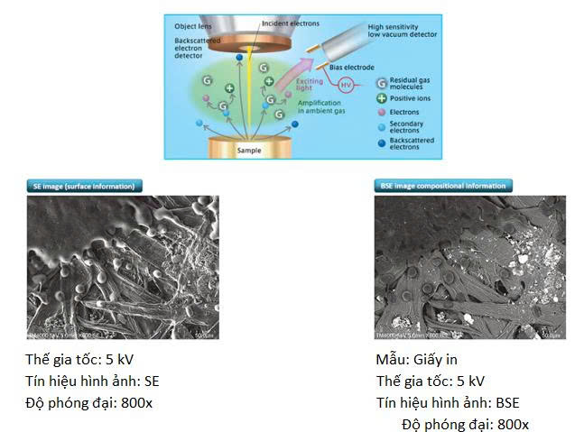 Đầu dò điện tử thứ cấp tiên tiến để thu được chi tiết bề mặt với những mẫu không dẫn điện ở điều kiện chân không thấp