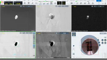 Bên trái: Hình ảnh mẫu vật được chụp bởi camera gắn bên trong buồng. Bên phải: Hình ảnh camera được truyền đến màn hình SEM MAP để điều hướng.[/caption]