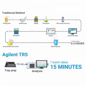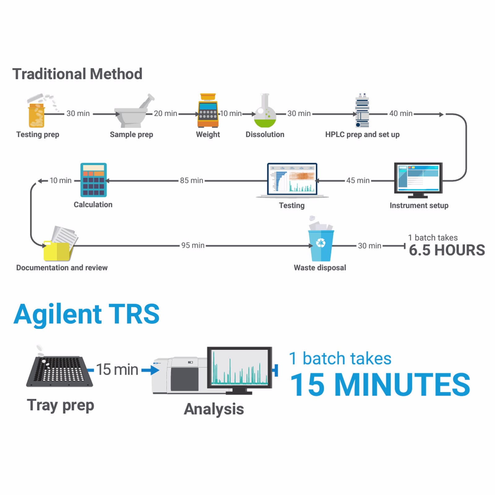 TRS100 cho phép sàng lọc đồng nhất hàm lượng viên nén hoặc viên nang nhanh chóng, dễ sử dụng và đa hình để thử nghiệm thành phẩm dược phẩm và phát triển công thức. Dễ triển khai hơn các phương pháp quang phổ khác, công nghệ quang phổ Raman truyền qua (TRS) của Agilent cho phép phát triển và triển khai phương pháp đơn giản để phân tích định lượng trong các ứng dụng kiểm soát chất lượng.